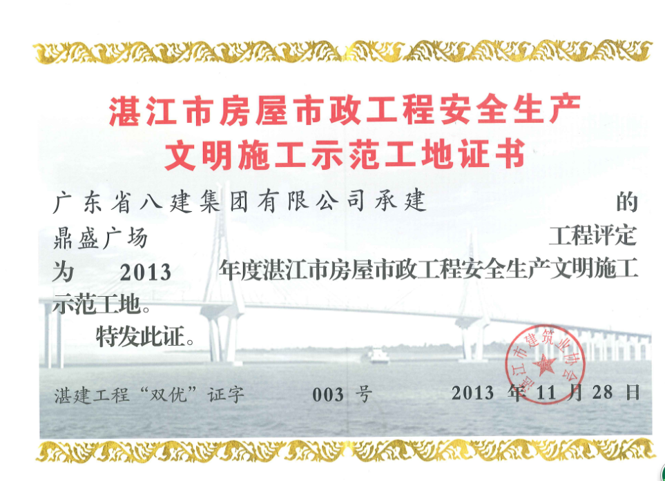 廣東省AA級文明標(biāo)準(zhǔn)化工地證書